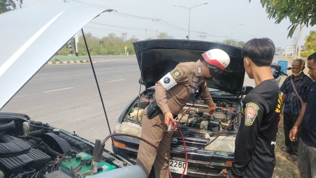 ร.ต.ท.วิชัย อุ่นซิม รอง สว.(ป) สภ.ท่าหลวง ได้ให้การช่วยเหลือประชาชน เนื่องจากรถสตาร์ทไม่ติด บริเวณหน้าโรงพยาบาลท่าหลวง จึงได้ทำการพ่วงแบตเตอร์รี่ และสามารถเดินทางต่อไปได้