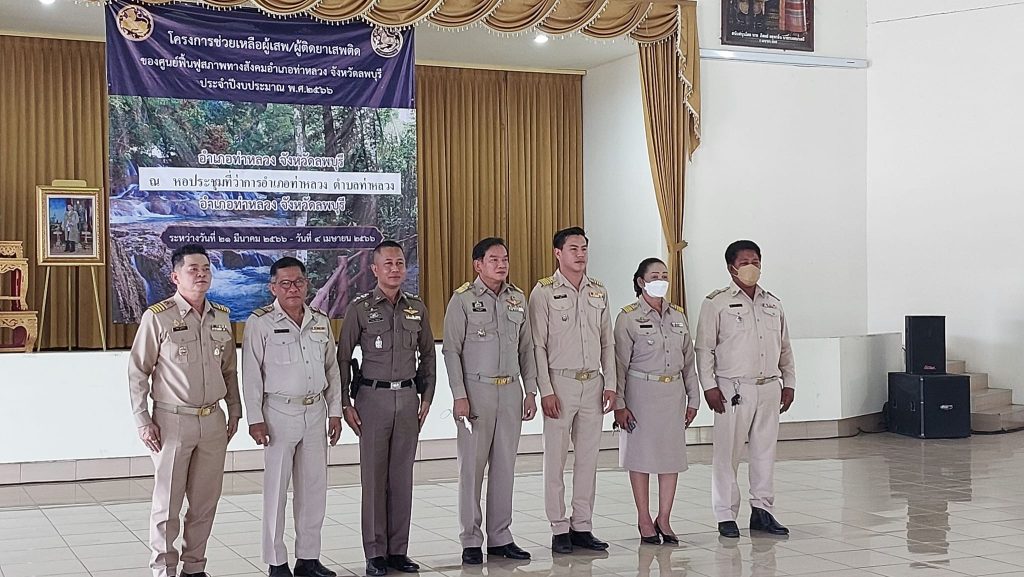 พ.ต.ต.เผด็จ การโสภี สวป.สภ.ท่าหลวง พร้อมตำรวจชุดมวลชนสัมพันธ์ ร่วมพิธีเปิดโครงการช่วยเหลือผู้เสพ/ผู้ติดยาเสพติด ของศูนย์ฟื้นฟูสภาพทางสังคมอำเภอท่าหลวง จ.ลพบุรี ประจำปีงบประมาณ 2566 ณ.หอประชุมอำเภอท่าหลวง จ.ลพบุรี