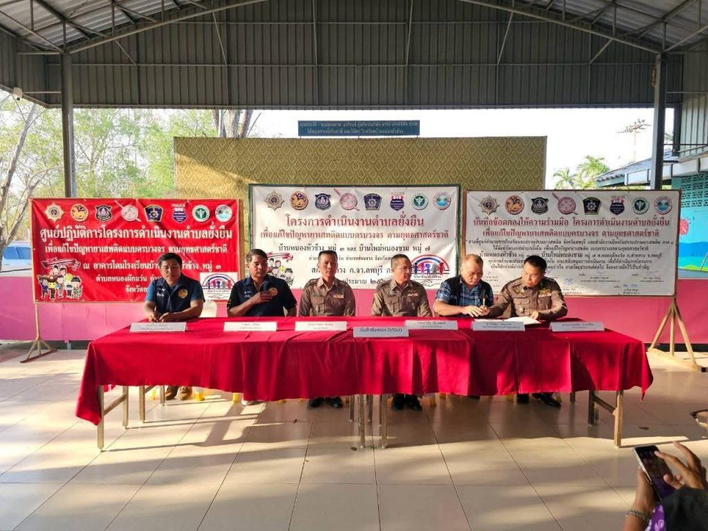 นายวันลพ สนแก้ว นายอำเภอท่าหลวง กำนัน ผู้ใหญ่บ้านตำบลหนองผักแว่น, ผอ.รพ.สต.หนองผักแว่น ,เจ้าหน้าที่ฝ่ายปกครองและ ชาวบ้านในชุมชนบ้านหนองหัวช้าง หมู่ 3 และบ้านใหม่หนองขาม หมู่ 7 ต.หนองผักแว่น ร่วมพิธีเปิด โครงการดำเนินงานตำบลยั่งยืน เพื่อแก้ไขปัญหายาเสพติดแบบครบวงจรตามยุทธศาสตร์ชาติ และร่วมลงนาม MOU ข้อตกลงประจำปี