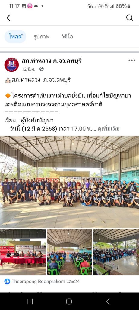 ประชุมชี้แจง แจ้งประกาศเจตนารมณ์ของ สภ.ท่าหลวง ในการป้องกันและต่อต้านการทุจริต 26 มิถุนายน 2568 วันที่ 7 มีนาคม 2568 เวลา 09.00 น. พ.ต.อ.ปานเทพ ปาณะดิษ ประชุมชี้แจงข้าราชการตำรวจ แจ้งประกาศเจตนารม Read more